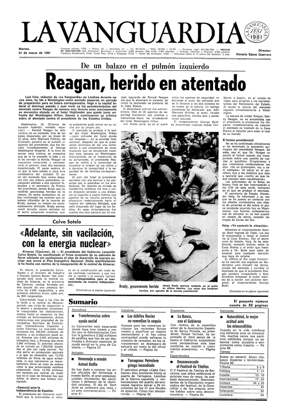 El 30 de març de 1981 estava allotjat a l’hotel Highlander, just davant del Washington Hilton. Veia per la finestra la concentració de cotxes i personal que entrava a un homenatge al president Ronald Reagan. Ens uns minuts vaig veure ambulàncies, policiesk soroll, crits i el president reaganb que havia estat objecte d’un atemptat. El veia com era evaquat a l’hospital. Era el segon dia com a corresponsal enviat especial a washington. Han transcorregut 45 anys. Era el mateix hotel en el que ahir dissabte dia 25 d’abril fou evaquat Donald Trump després que un individu entrés armat i disparés als volants de la sala en parlava el president dels Estats Units.
